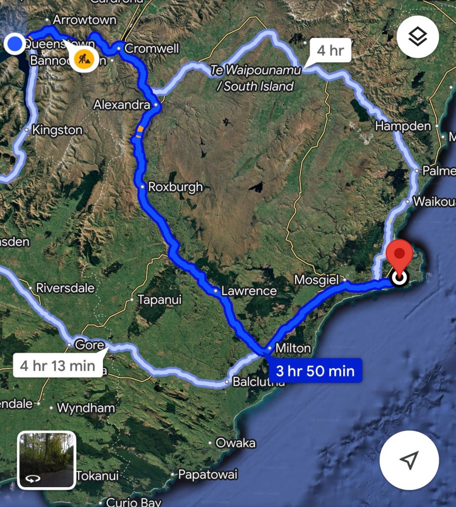 The trip to Dunedin was a little slow with the condition of the highway and lots of roadworks, so I was worried about taking a more “scenic” route incase the road was even worse. Looking at the maps we could take a different route north via Palmerston which adds only 10 minutes. I also find out the its known as the “Pigroot” route, named after a hotel called the Pigroot from gold rush times.