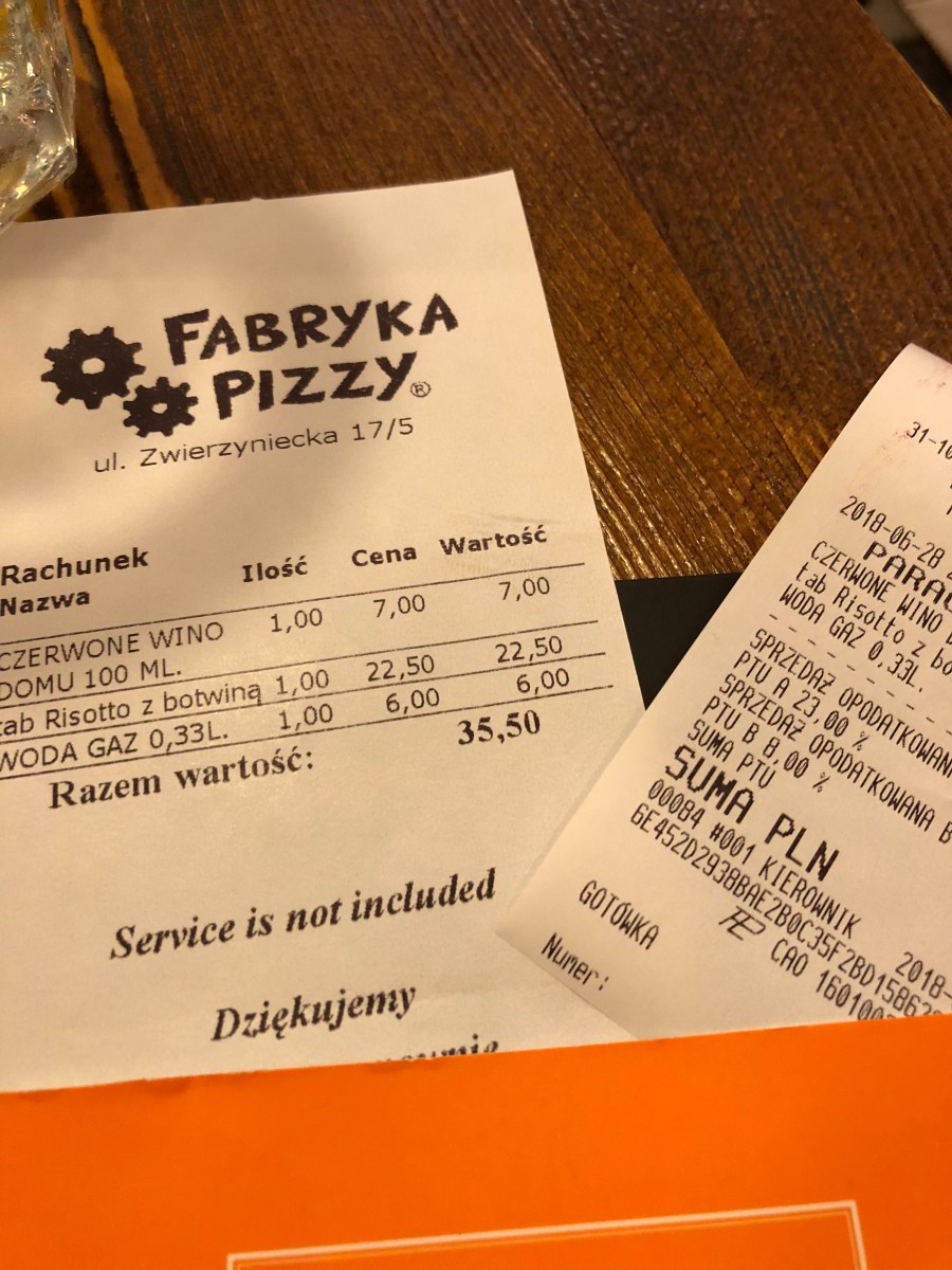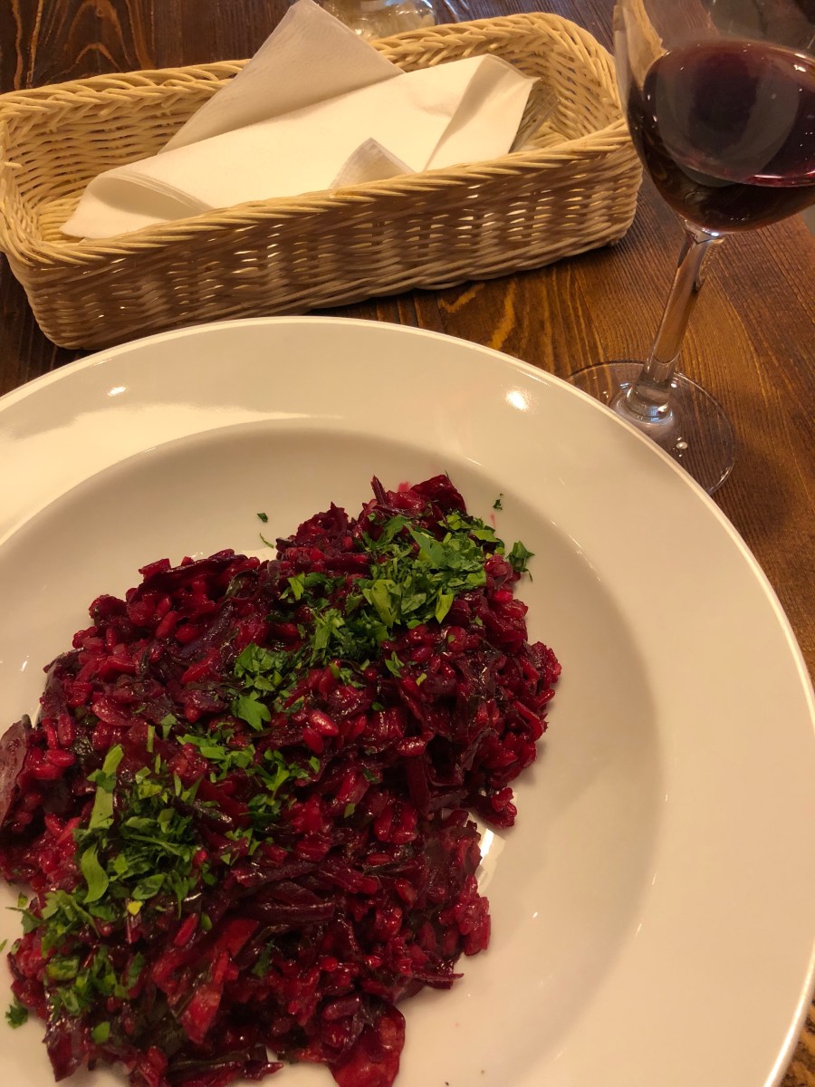 Tonight I went to Fabryka Pizzy for some Italian. I had the most spectacular Beetroot & Salami risotto. It would have to be up there with the best risotto I’ve ever tasted. Washed down with a glass of house red and a bottle of sparking mineral water for the unbelievable price of AUD13