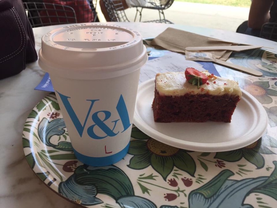 Instead they headed over to the Victoria and Albert museum. Before heading in for a look around the coffee and cake there was sampled, with reports that it was quite good. The cake certainly looks alright !