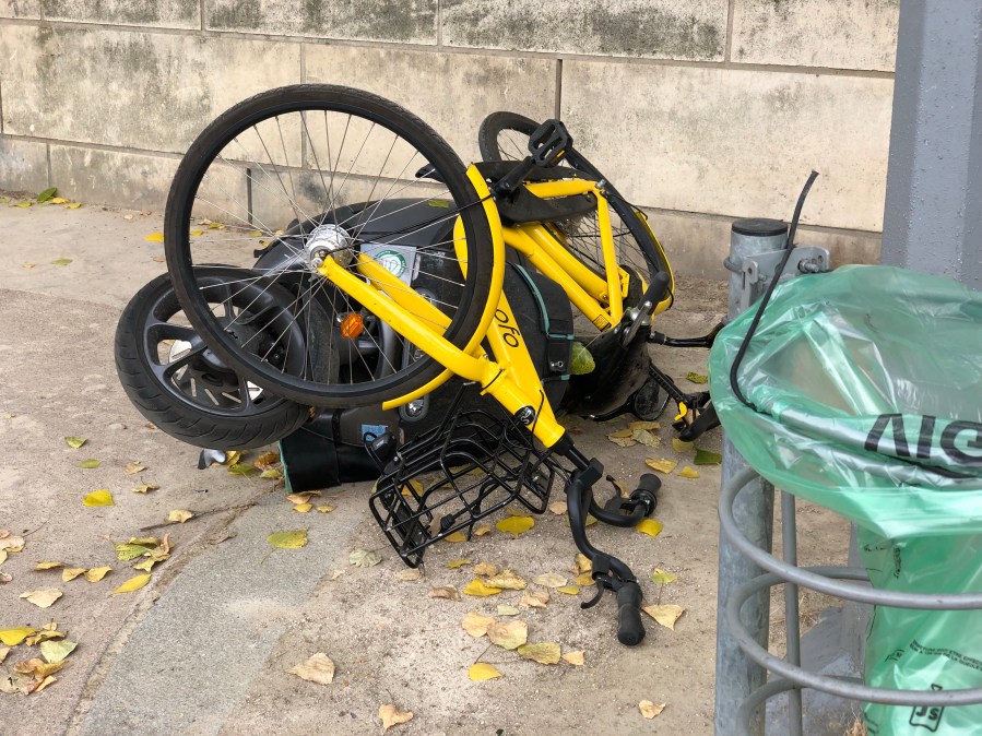 An ofo share bike getting the same treatment they do at home.