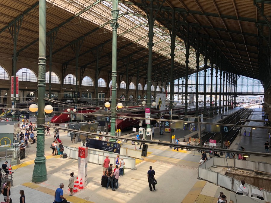 Inside Gare Du Nord looking down from the Eurostar check in area.