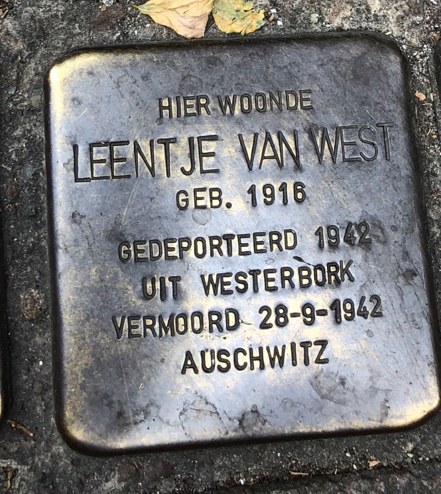 Sander points out some brass squares in the pavement. Close inspection shows they have the names of Jewish people who were deported from Amsterdam during the war and killed by the Nazis. This one person was murdered at Auschwitz. All the more chilling looking at this considering I’d been to Auschwitz only a few weeks before. Click the text to read about that.