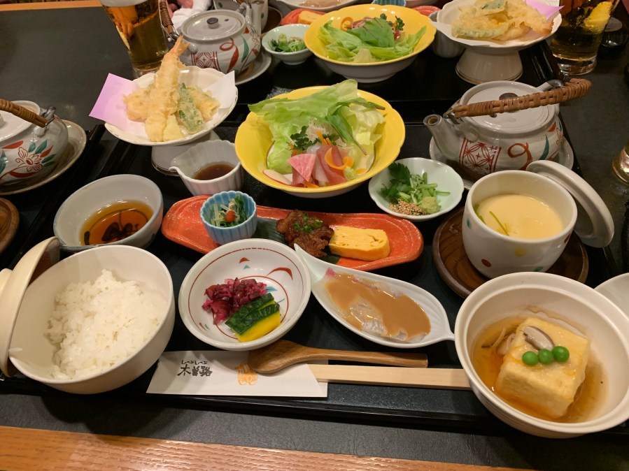 The first Resturant was a sushi place. I was a little apprehensive as I’m not a seafood eater, however Kyoko helped order a few things that were not all seafood. I did still try the shrimp and red meat tuna. I was actually surprised how non fishy they tasted. Also had some pickled ginger, lotus root and Burdock. I’ve never had the last two before. I chose cold green tea given how hot it was today. Very nice