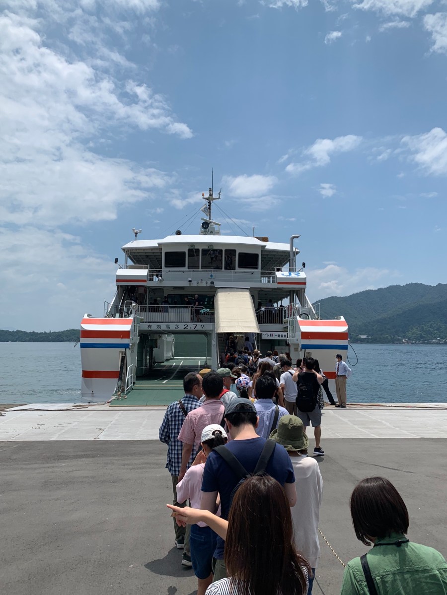 The Japanese do the public transport so well, as soon as the train arrived at the ferry terminal, there was a ferry waiting to take us to the island. The ferry only take 10 minutes. Of course since we had JR passes, the day out cost us ¥0 (apart from water we bought). JR passes are fantastic.