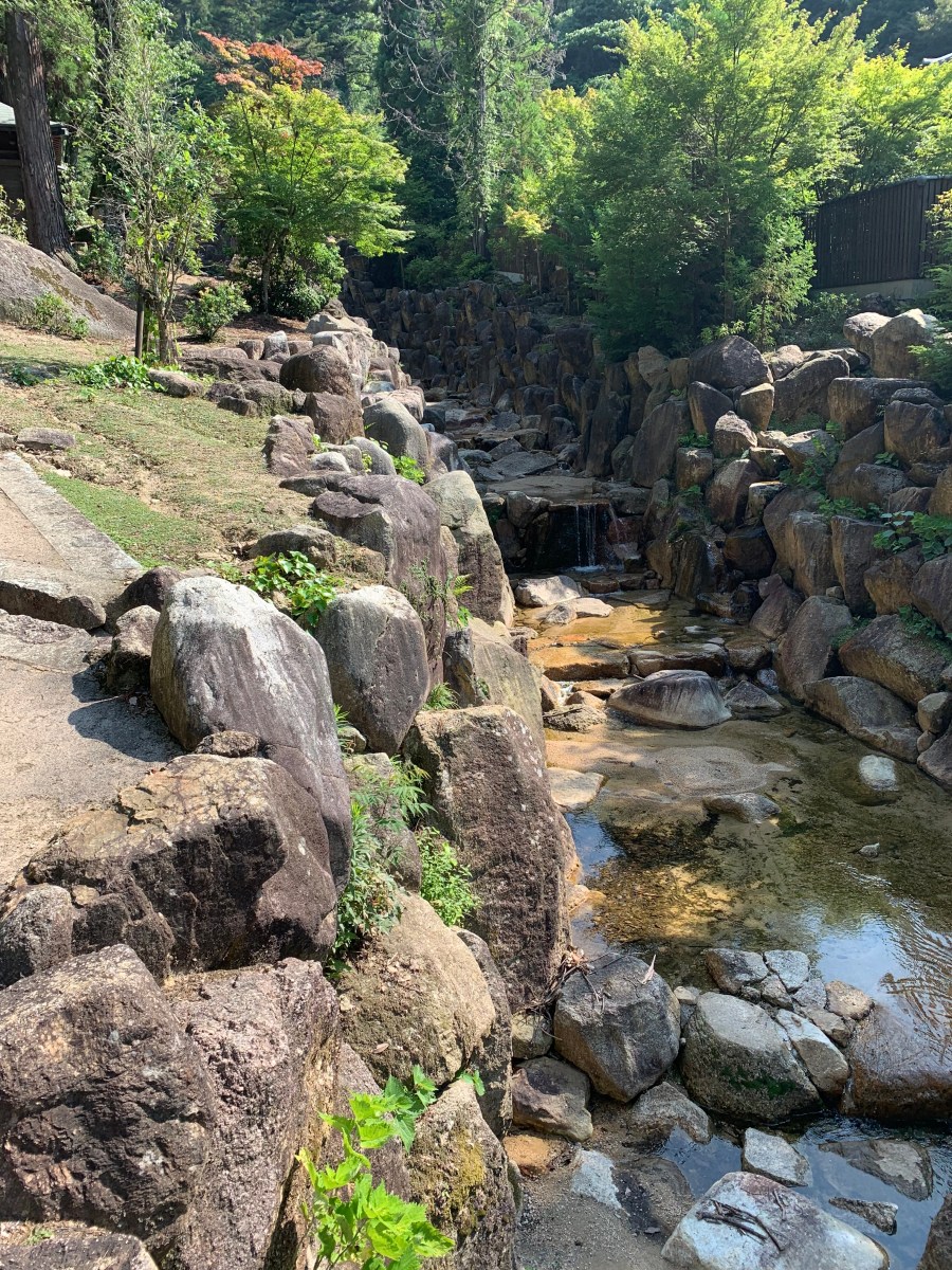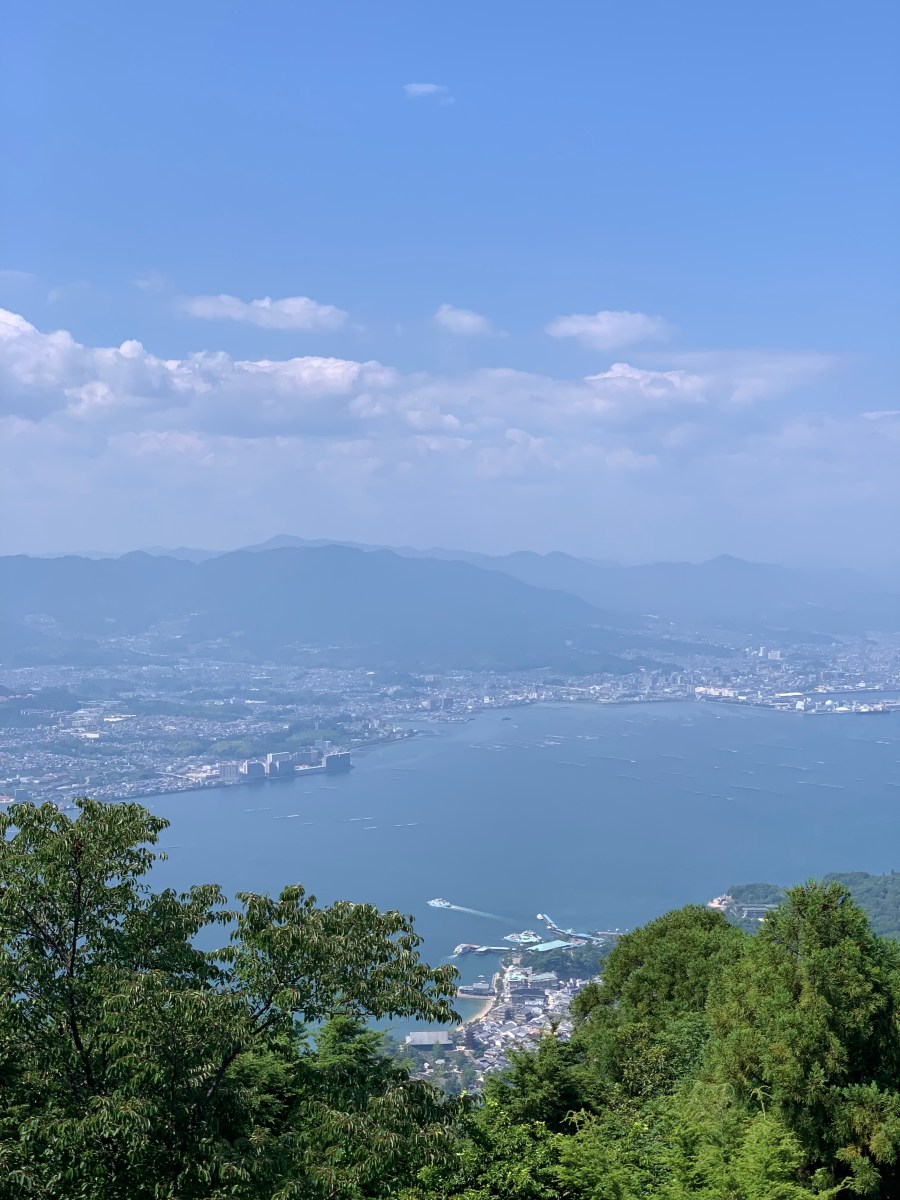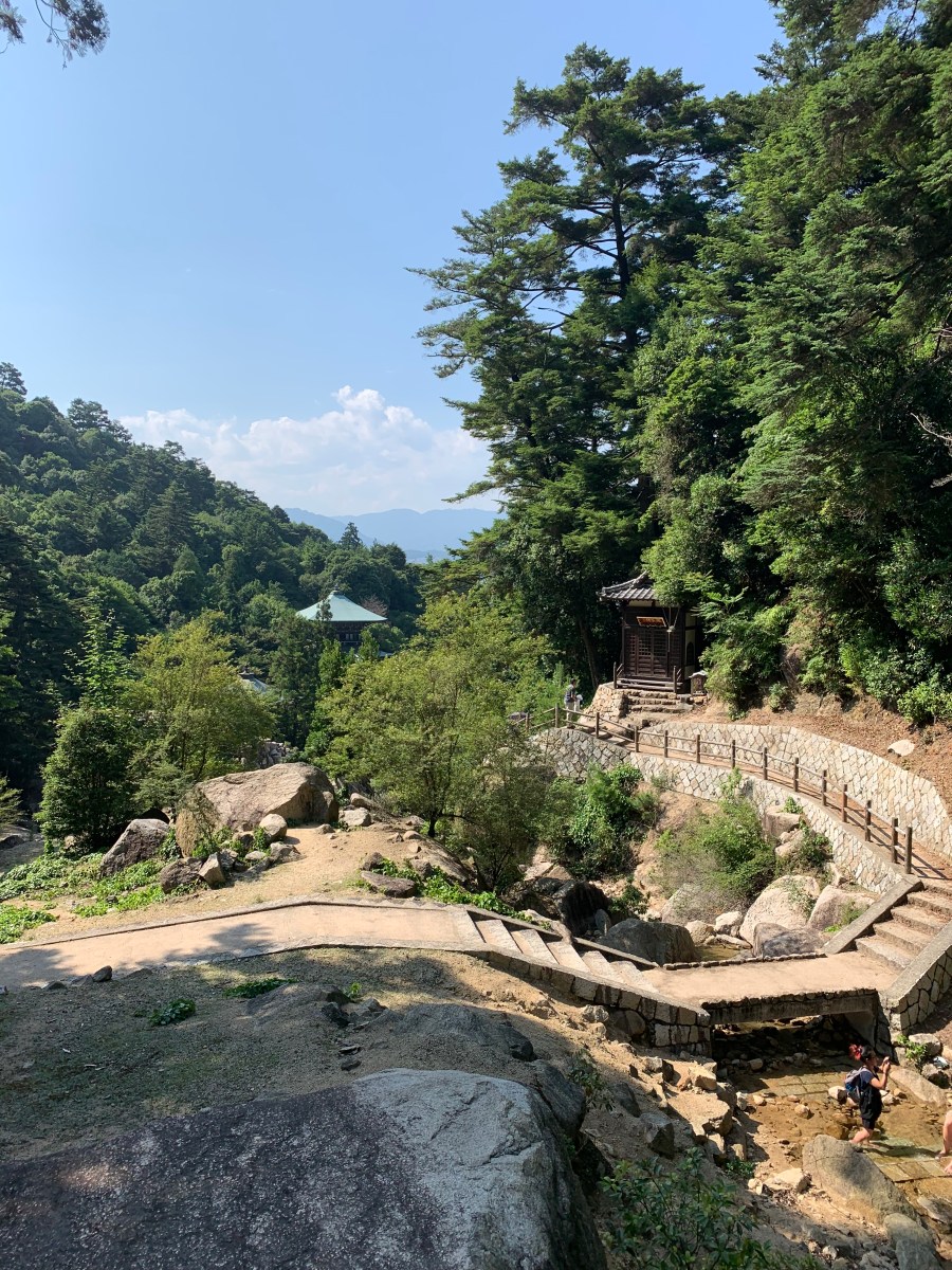There was another sign saying you could hike the 2.5km up instead, but warned to take plenty of water. We had some water (luckily I’d bought a litre down at the ferry terminal). So off we went. It was almost 2.5km of stairs straight up. It made the walk we did along the Nakasendo Trail look like a walk in the park.