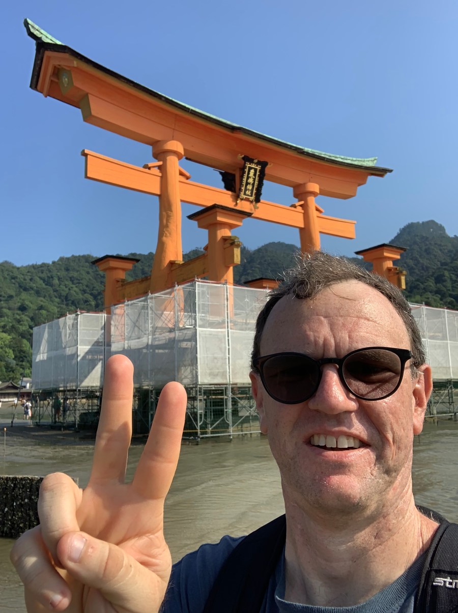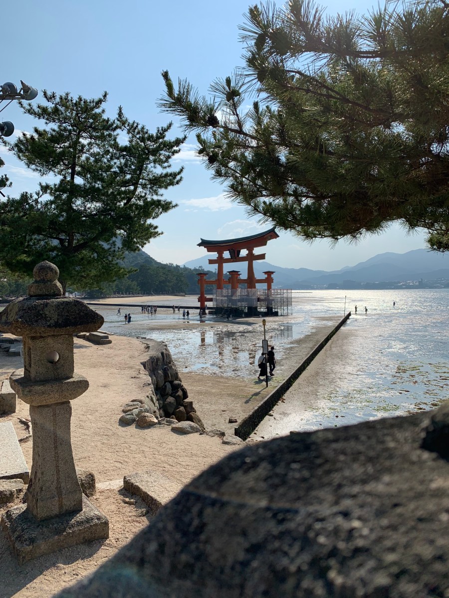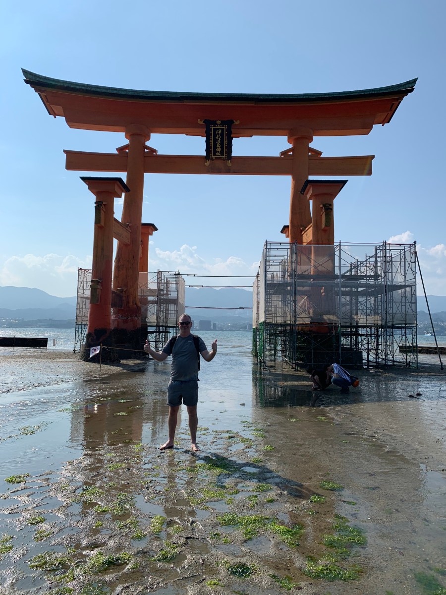 Once down the mountain, the tide had gone out so we walked out to the Tori gate. Unfortunately it’s started to undergo renovations so was partly covered with scaffolding
