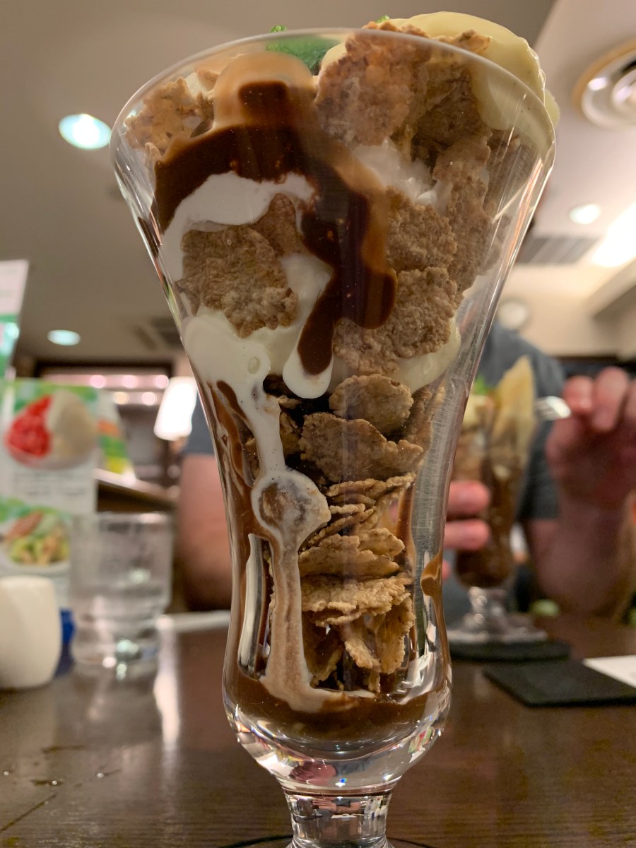 After a dip in the hotel Onsen it was time for dinner. We had Chinese tonight at the station then found a parfait place and had one of those.