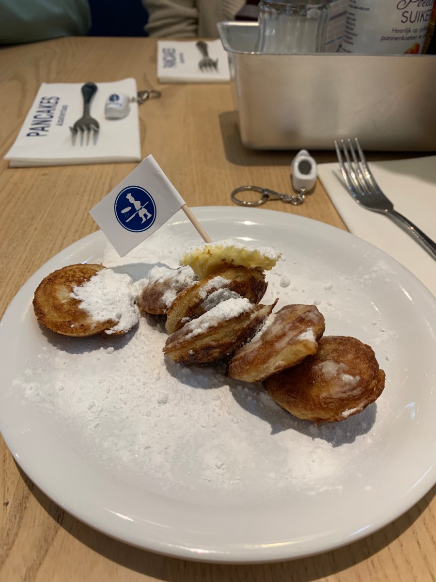 This was the 1st stop of 6 on the tour. Here we were in a pancake shop and we were served Dutch Poffertjes, which are mini puffy pancakes with sugar, butter and syrup. We were offered any coffee we wanted, so I chose the way most Dutch people choose, which is black coffee with cream. This was absolutely a cure for the cold weather and everything was extremely delicious.