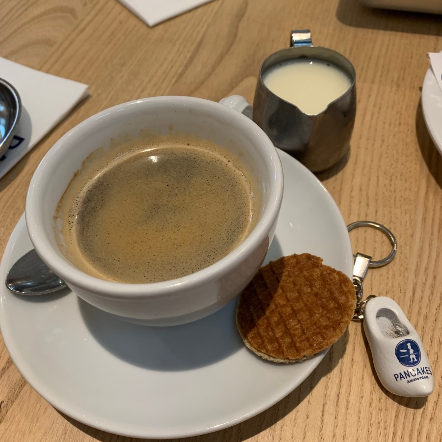 Today started off really wet and cold (again), pretty much now 14 days straight with rain since we landed in London. The only day with some real sunshine was our day in York and the day we spent on trains and ferries getting to Amsterdam. I’d really been starting to think holidaying in this part of Europe at this time of year was a huge mistake and should have gone to Spain and southern Italy instead. However rather than going to the airport and getting a flight to Barcelona, we braved the rain and made it to the food tour starting point. Just before we started the food tour we grabbed coffee from the nearest place on the corner. It was only machine made but anything caffeinated and warm was welcome on such a horrible day.