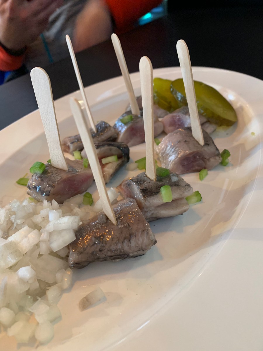 Stop 3 was a fish place with traditional herring with pickles, then battered and fried cod. I’m not a seafood eater so I didn’t try this, but Sharon assured me it was absolutely delicious. All the more for her since I didn’t eat any.