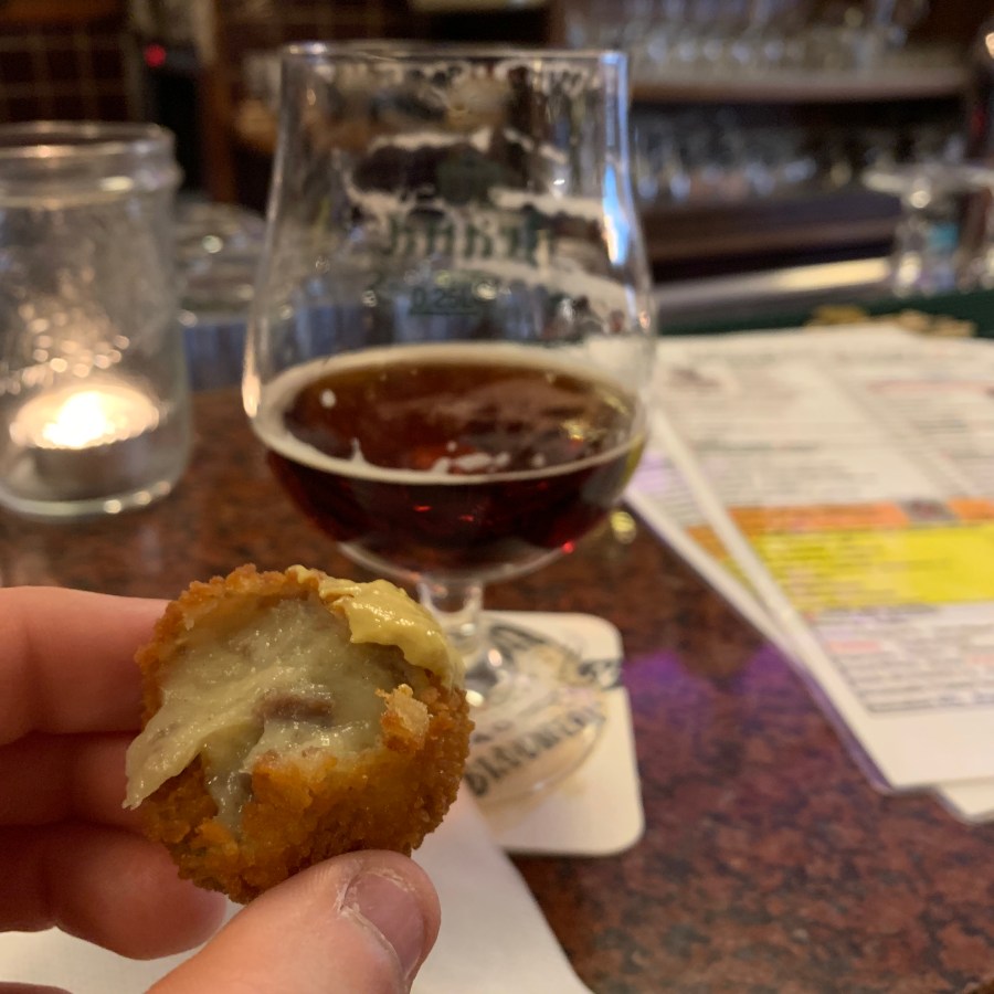 Stop 4 was at a Dutch pub where we had a Dutch Beer and some traditional Bitterballen, a traditional fried pub snack which is dipped in mustard before eating. Best described as a small round croquette. Really really delicious on such a cold day. I could have eaten more of those.