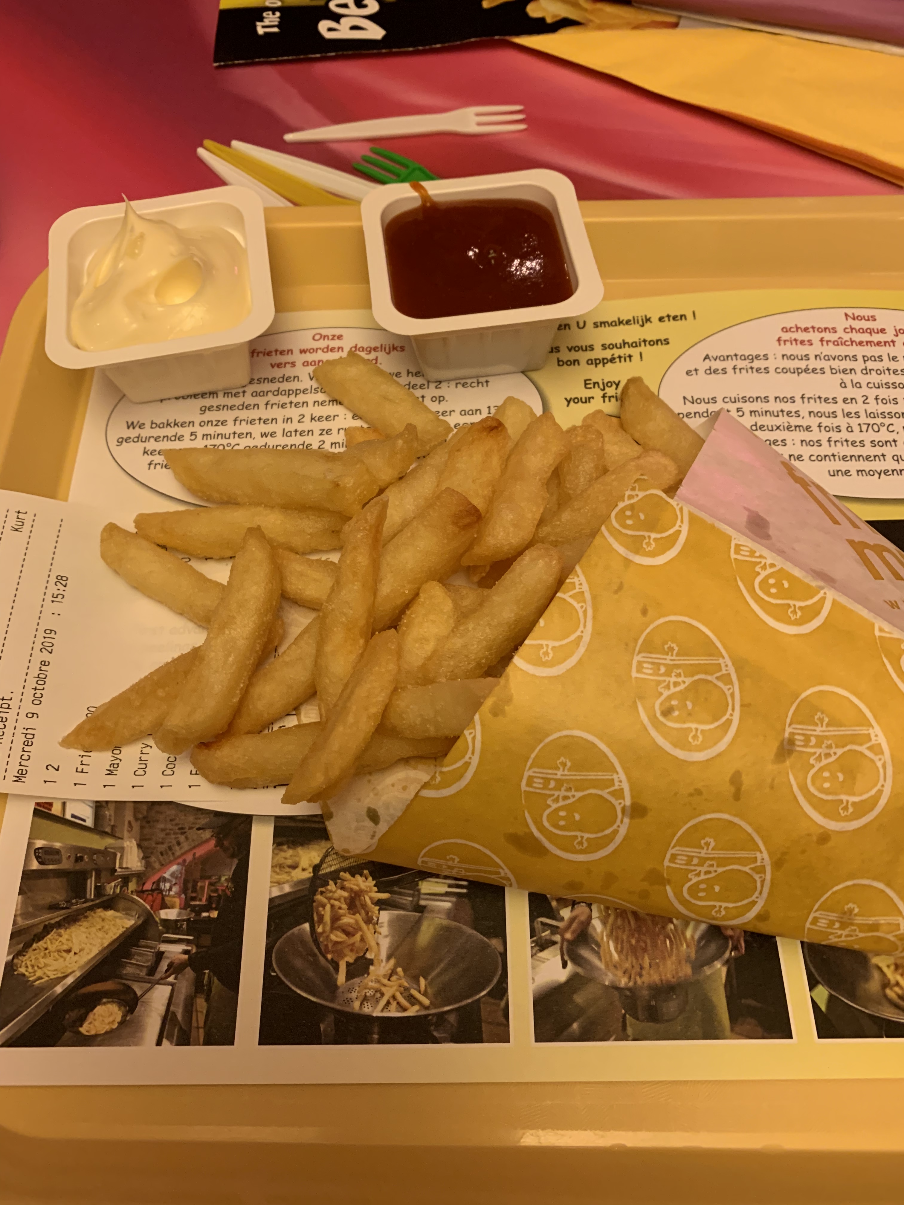 Next we went to the Friets (chip) museum, which if I’m honest is a bit kitschy and overrated. You learn a bit about the history of the potato and how central fries are to the culture of Belgium. Best bit is they have a restaurant in the basement which does amazing chips. In Belgium and the Netherlands Mayo is the condiment of choice and it’s delicious on chips. They also do an amazing curry ketchup here. We all shared a serving of traditional chips. They are as good as they claim.