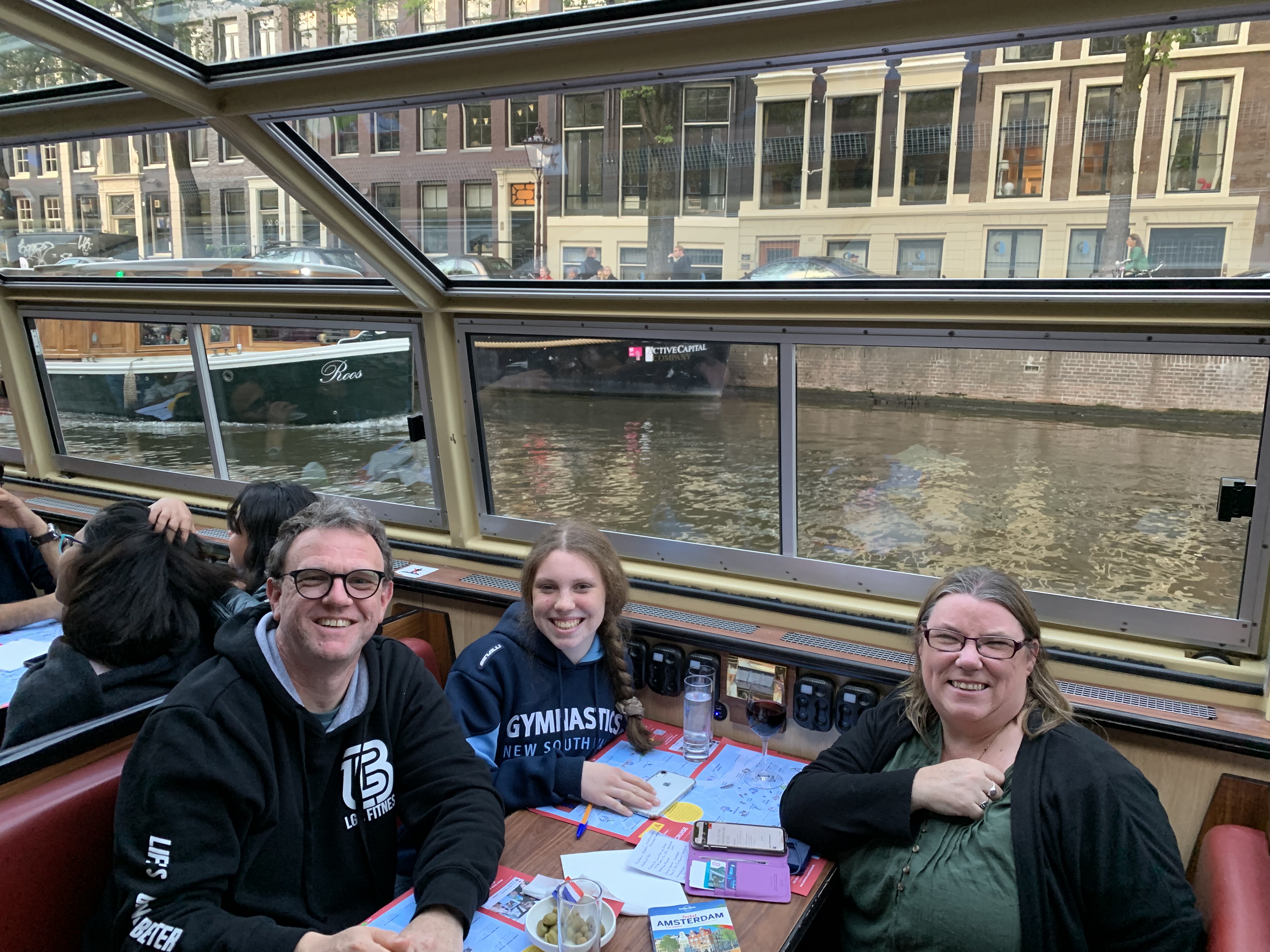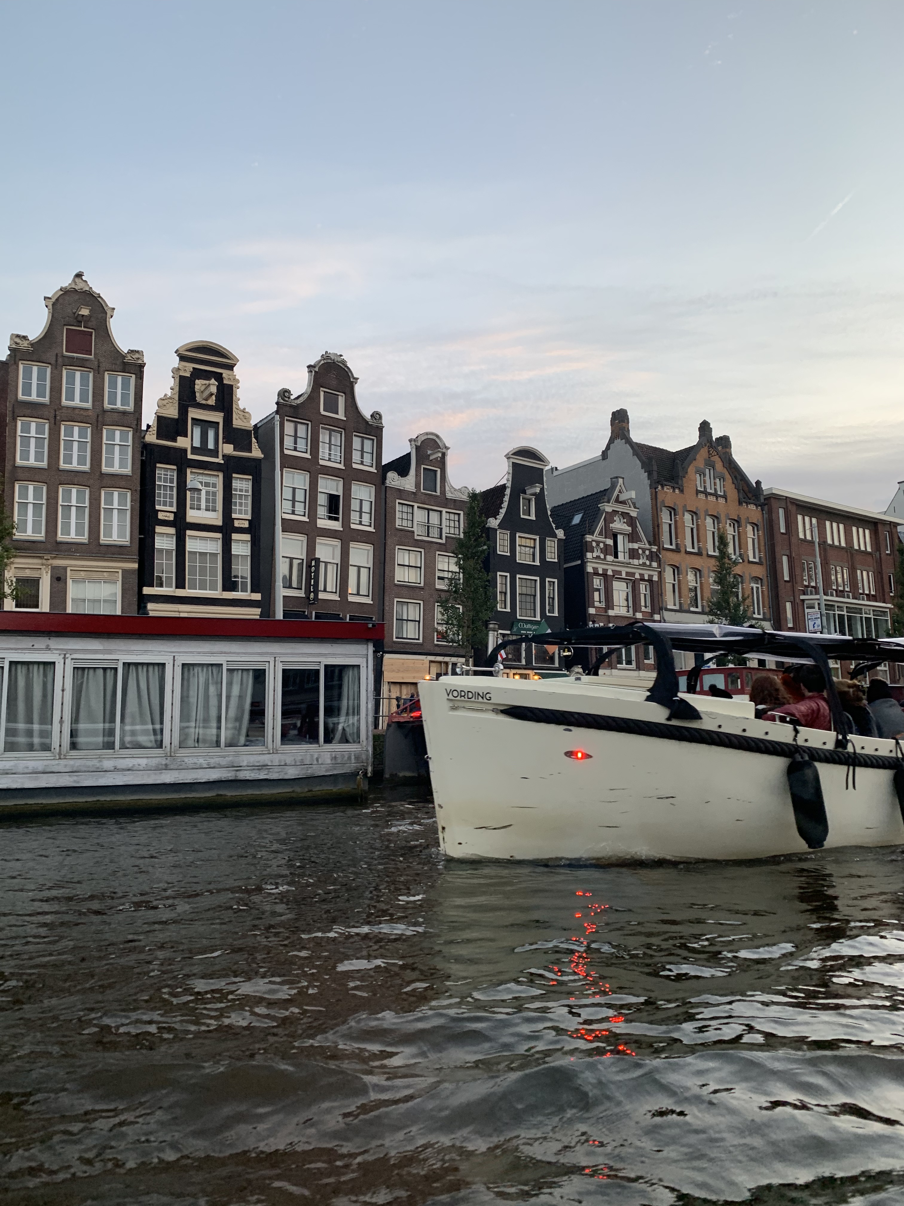 Tonight we did a pizza and canal cruise though Amsterdam. I did the same one last year, thought it would be a bit crap but it turned out to be awesome, so brought Sharon and Emma onto the same one this year. The cruise lasts about 1.5 hours, you get a pizza, ice cream and unlimited alcohol. The cruise goes past all the main sites, the bridges, red light district, house boats, Amstel river etc.