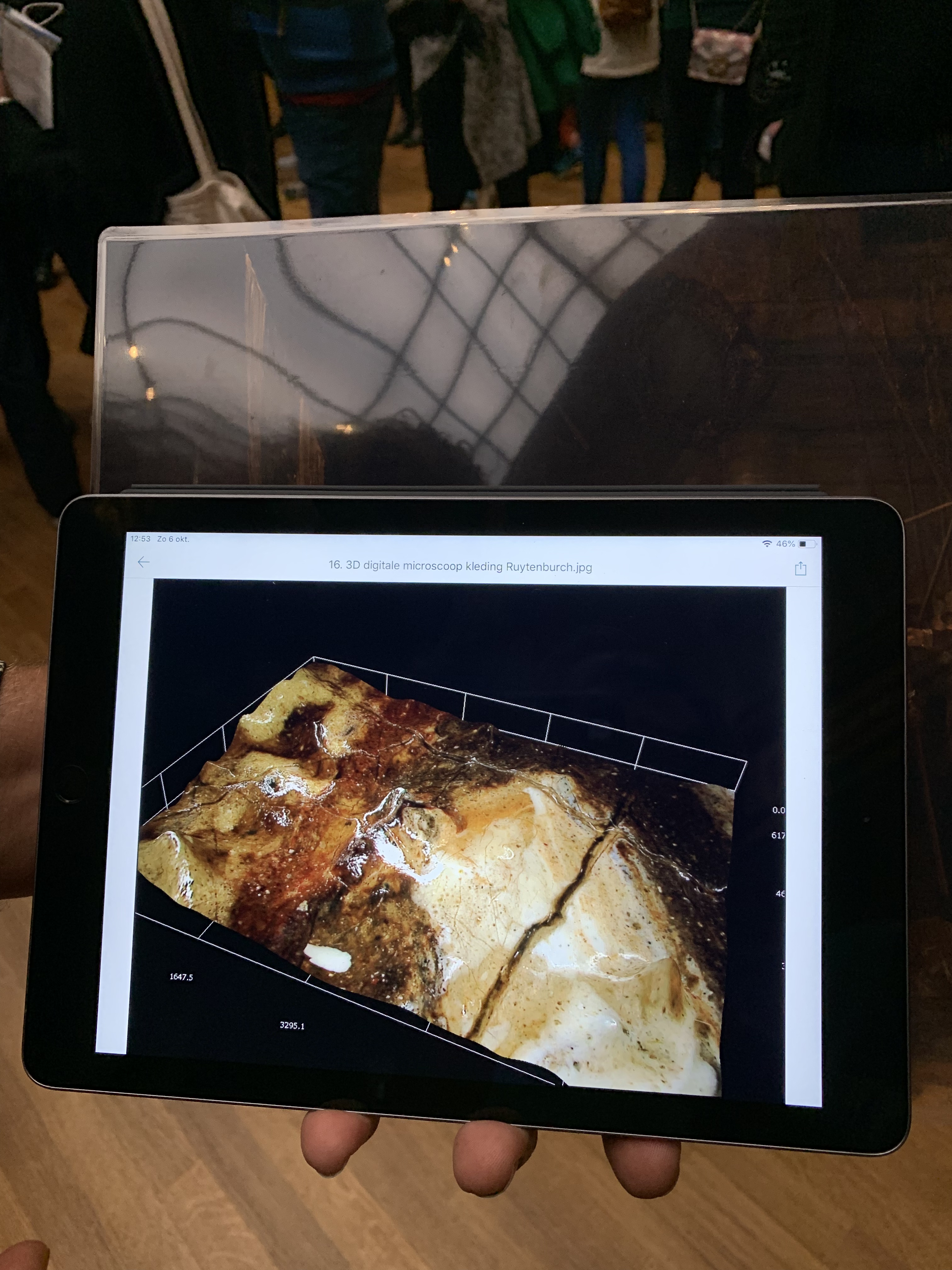 3D vision of part of the scan, showing the paint details at millimetre level. They are also analysing the exact contents of the paint.