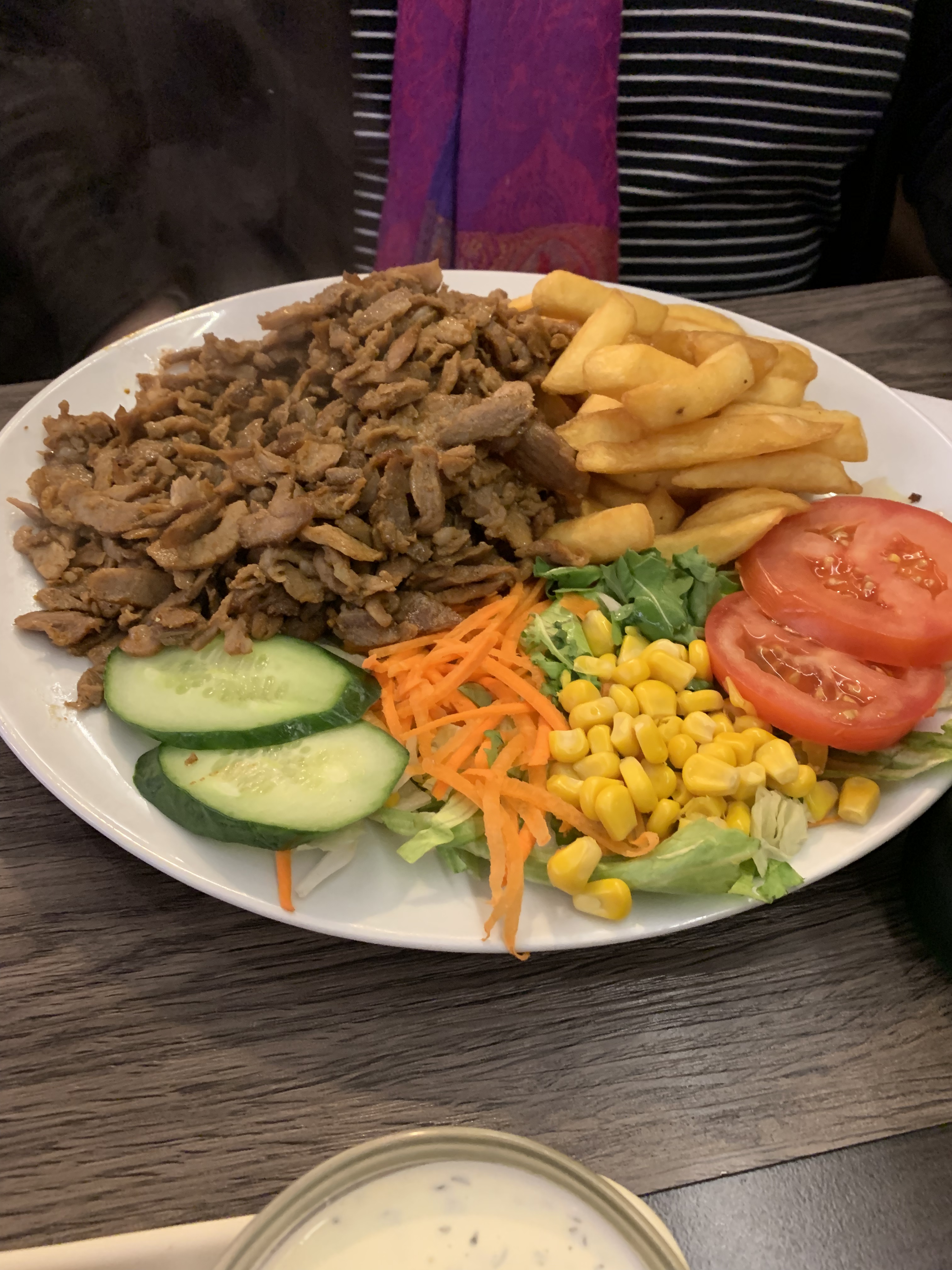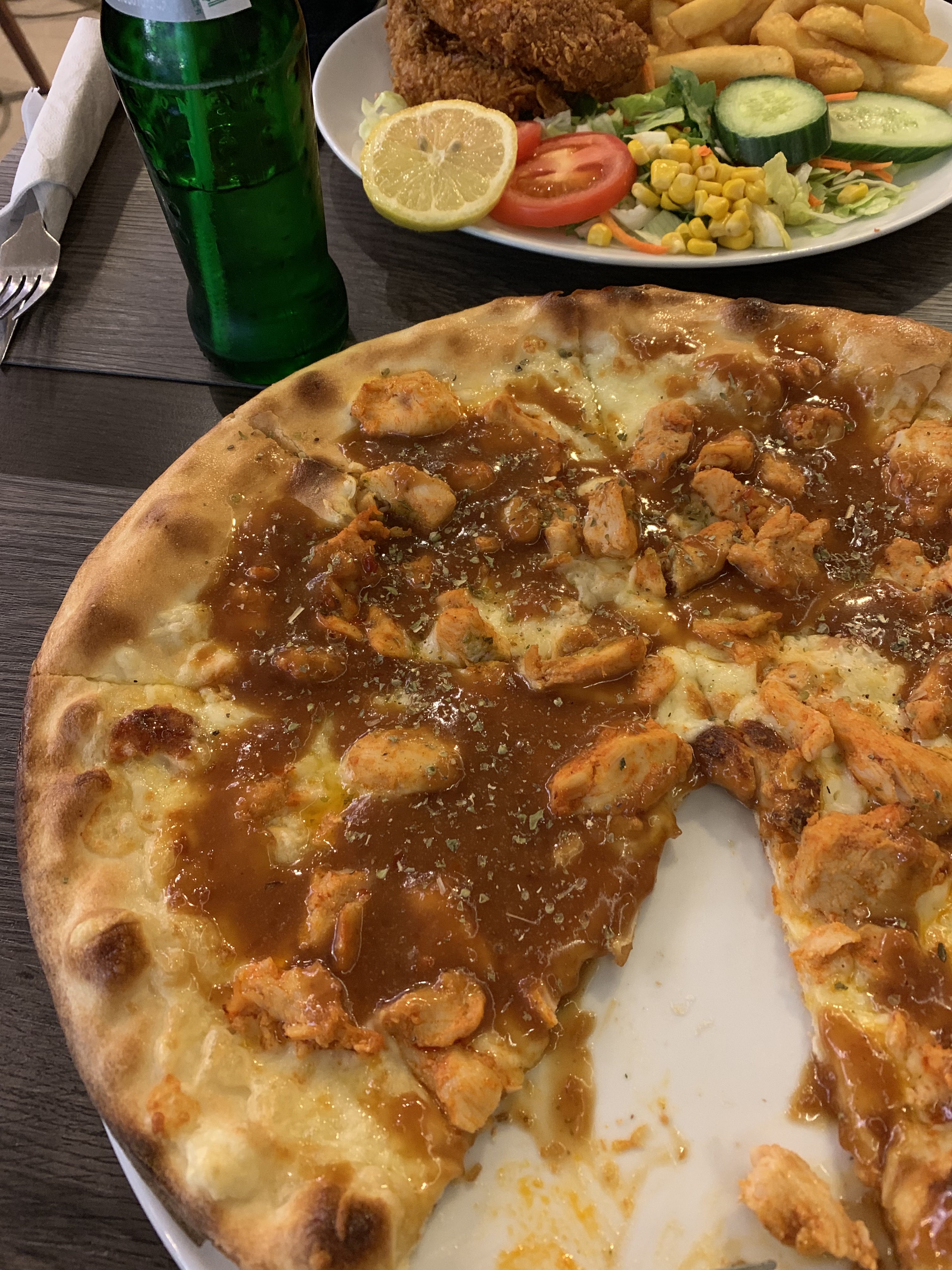 We eventually found one, I had a Sate chicken pizza which was delicious. Sharon had a Shwarma plate. Emma has the Dutch equivalent of a chicken Schnitzel.