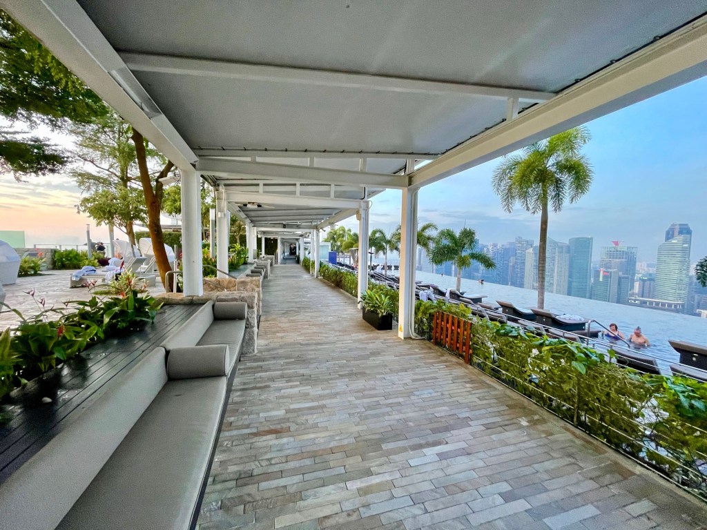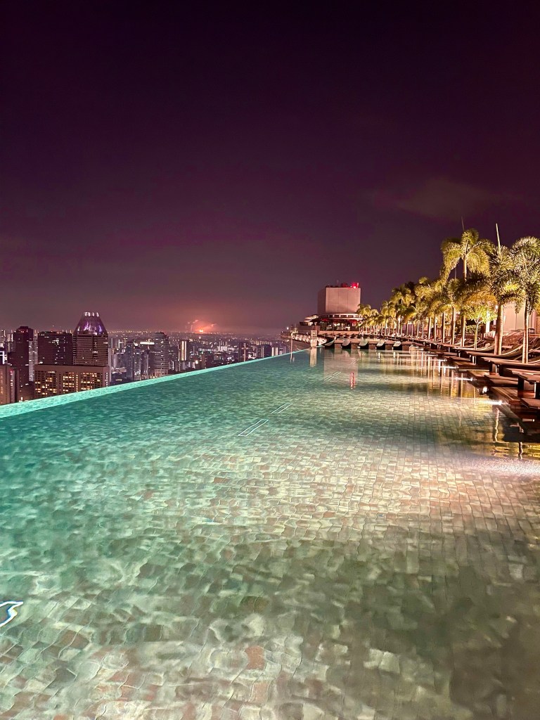 Completed in 2010 it’s become an iconic building in Singapore. So many people stay here just to swim in the infinity pool (yours truly included). The pool is Singapore’s Instagram / TikTok ground zero. So many people photographing themselves in and around the pool. I suspect the lifeguards on duty spend more time fishing phones from the bottom of the pool than rescuing people. The pool isn’t very deep, it’s 1.2 metres.