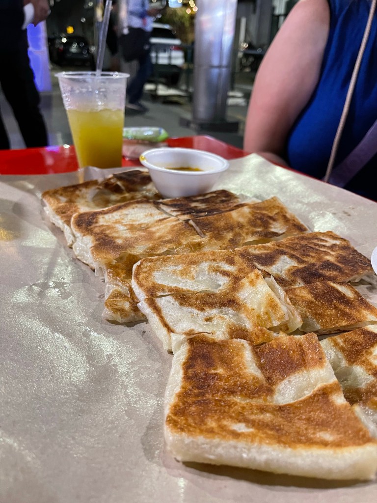 Just sitting here, we noticed a few other people eating some naan bread and said to each other, wow could do with some of that bread right now, and somehow the Satay gods must have heard us and this random Indian guy appeared with a menu selling Satay. Five dollars later we had this massive plate of delicious naan in front of us.