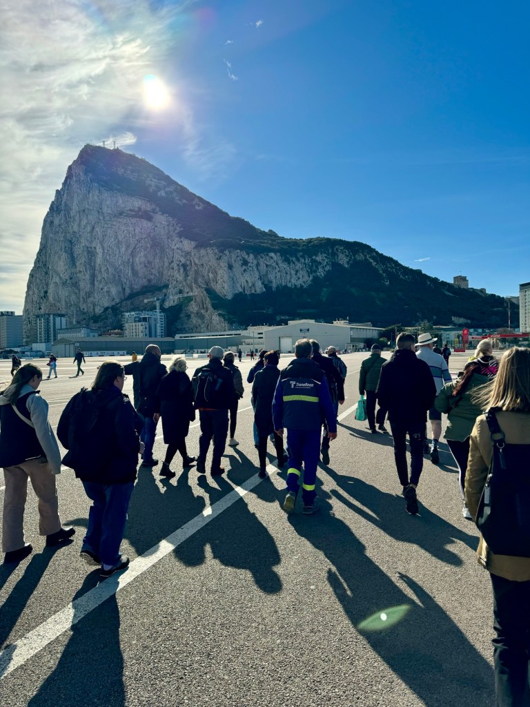 It’s not an island, but to get into Gibraltar after going through customs and immigration you need to cross the airports tarmac. There is now a road tunnel under it that opened 12 months ago but foot traffic still walks across. It’s far quicker to get through the border as a pedestrian, so the tour companies walk you across and out you on a local tour bus on the Gibraltar side.