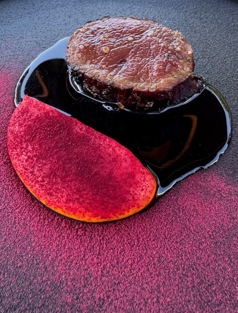 For me the standout dish was the BBQ Venison, with an amazing glaze jus that was almost mirror like. The taste was sensational. I also had a great duck and orange dish, Sharon had a layered cod dish.