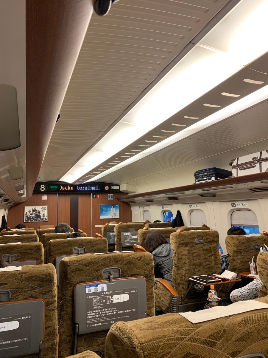 We are on the Sakura #540 and this is the most comfortable one we have been on. Most Shinkansen have seats in a 3-2 seating arrangement. This has 2-2 so seats are wider, and just more comfortable in general.