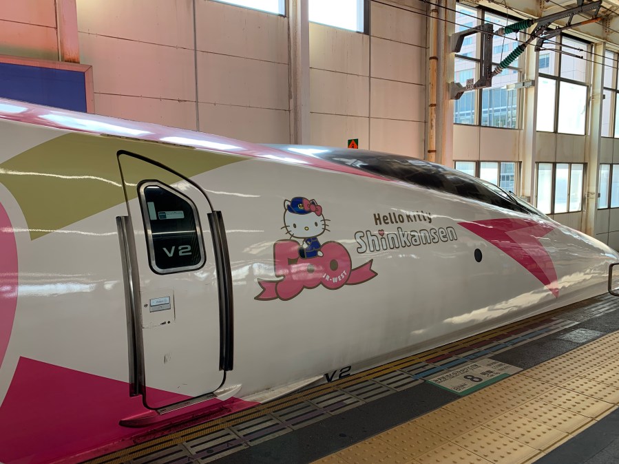 Waiting for our train on the platform, the Hello Kitty Shinkansen pulled into the platform. I’ve never seen so many people taking train photos at once, and very few of them fit the standard train spotter stereotype.