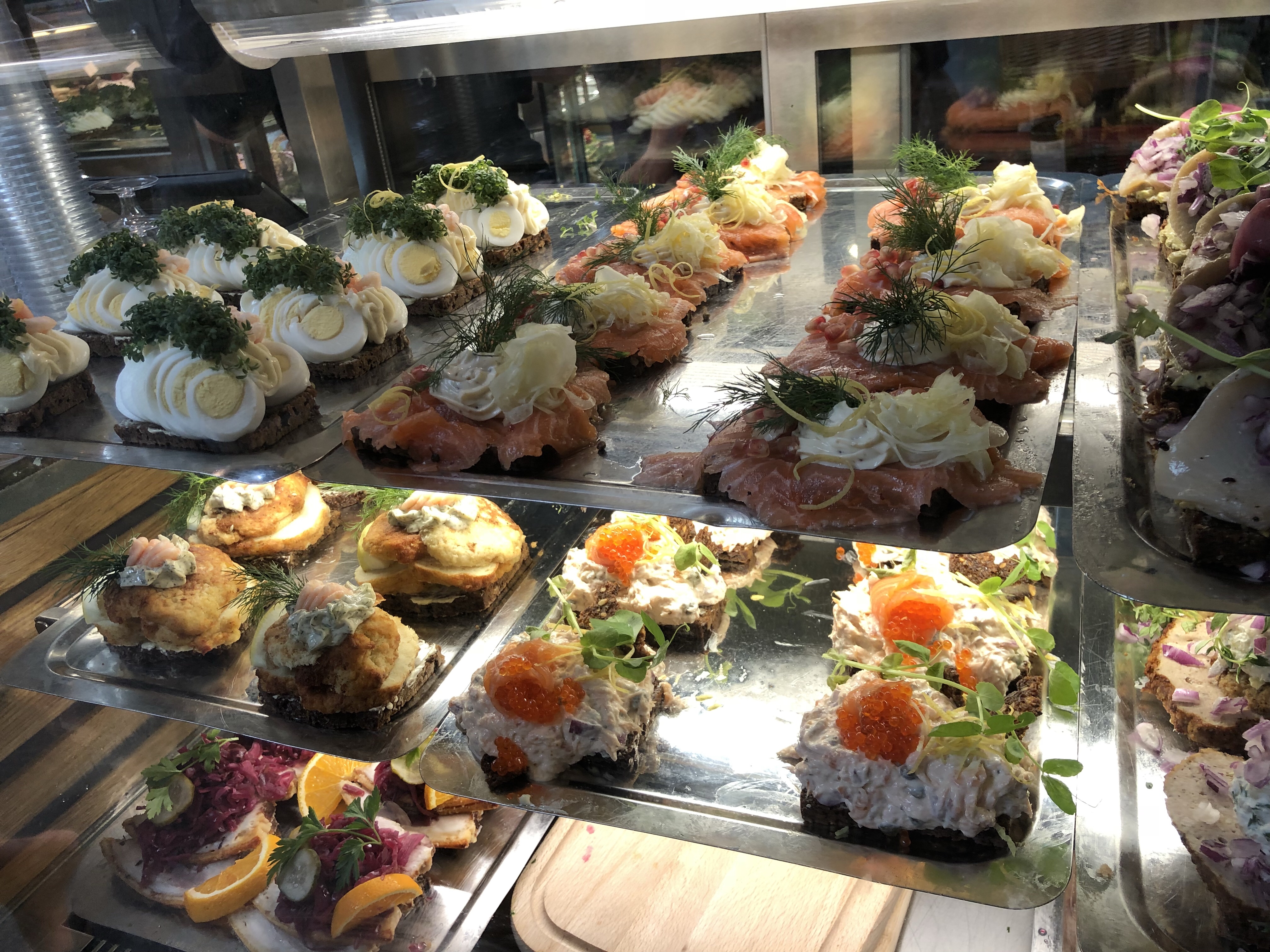 Wandered around for a while and the queue for the open sandwich (Smørrebrød) had died down so I ordered a roast beef one. It had roast beef, corn pickle, dried onion, pickles and onion. It was sensational, way better than the one yesterday which was chicken.