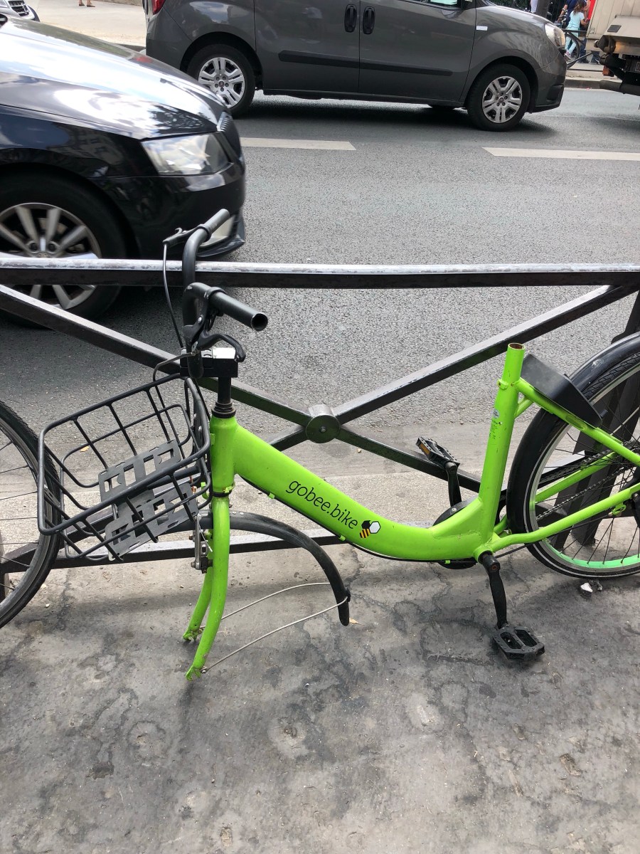 Once we had all been introduced and shown the basics of how the bicycle works, we went to an underground car park where the bikes are stored and were fitted with one. My first bike had brakes that didn’t work well so I swapped for a different one. Reminded again that in countries that drive on the right, the brakes on bikes are back to front. Back brake is on the right…